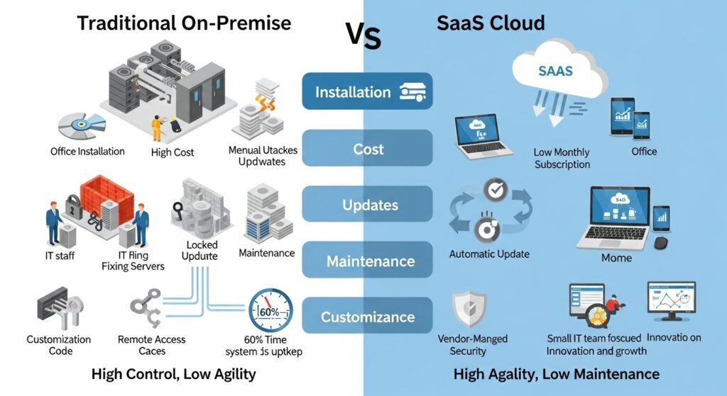 | Comparison Feature | Traditional (On-Premise) | SaaS (Cloud) |